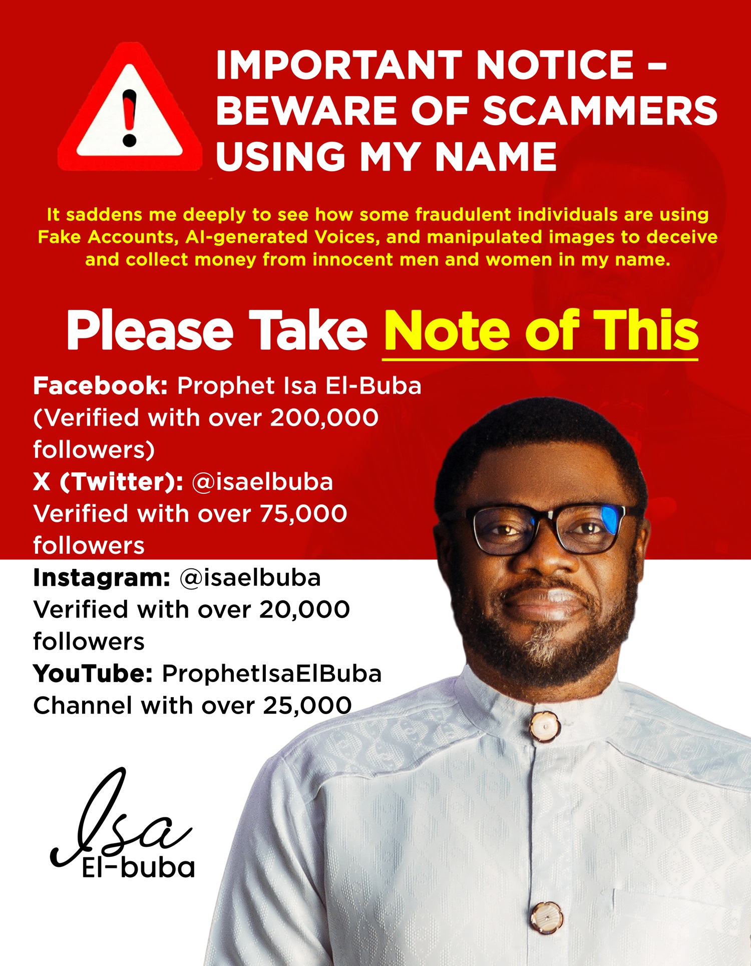 ✅ Facebook: Prophet Isa El-Buba (Verified ✔️ with over 200,000 followers)